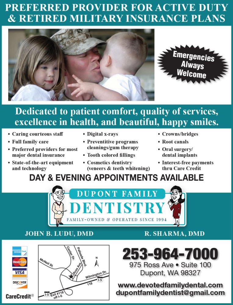 Our team of dentists allows us to deliver patient comfort, quality of service, excellence in health and beautiful, happy smiles. We welcome patients starting at 6 months of age, and we have even seen several patients after their 100th birthday. At DuPont Family Dentistry, your family becomes a member of ours.